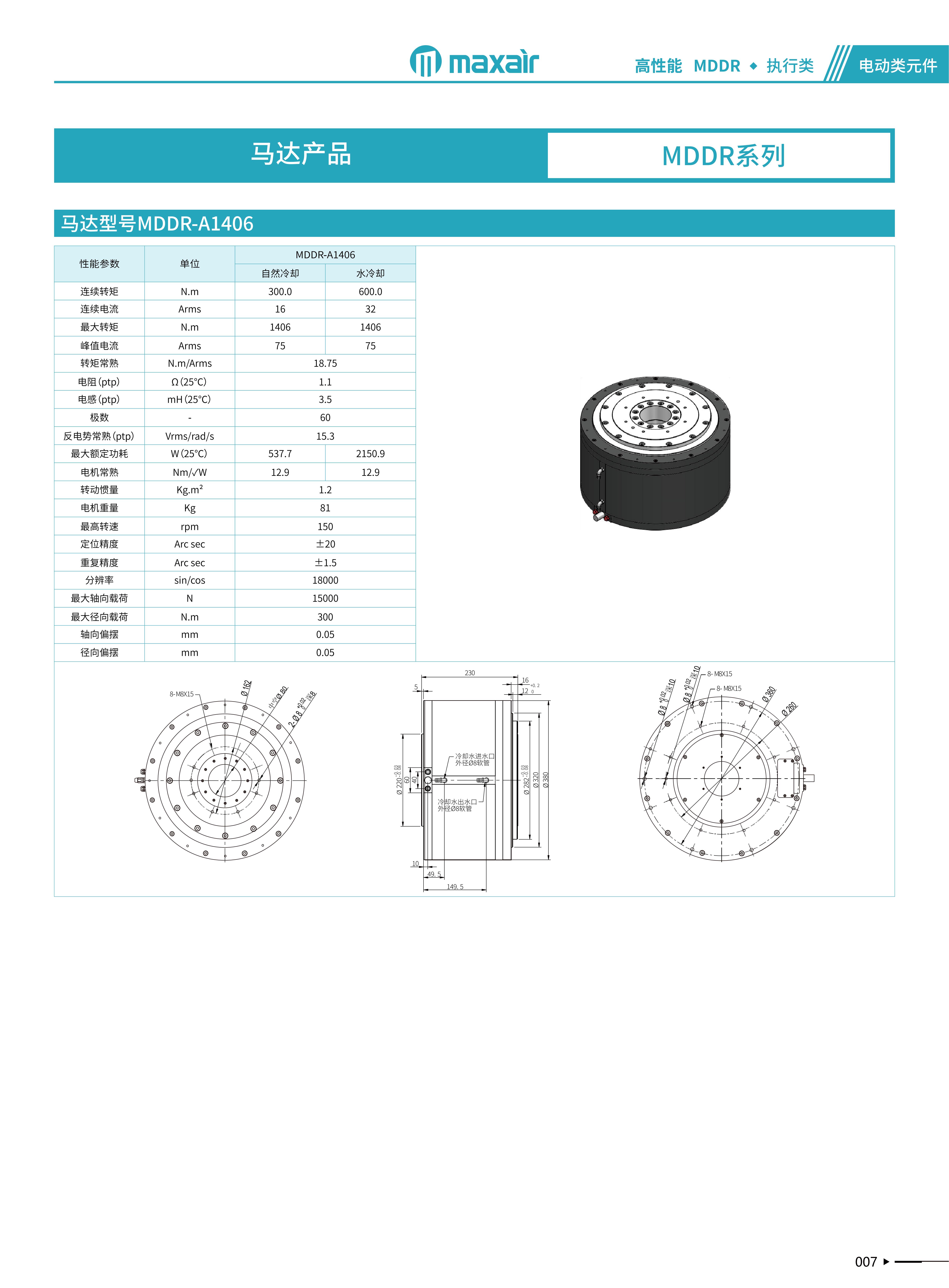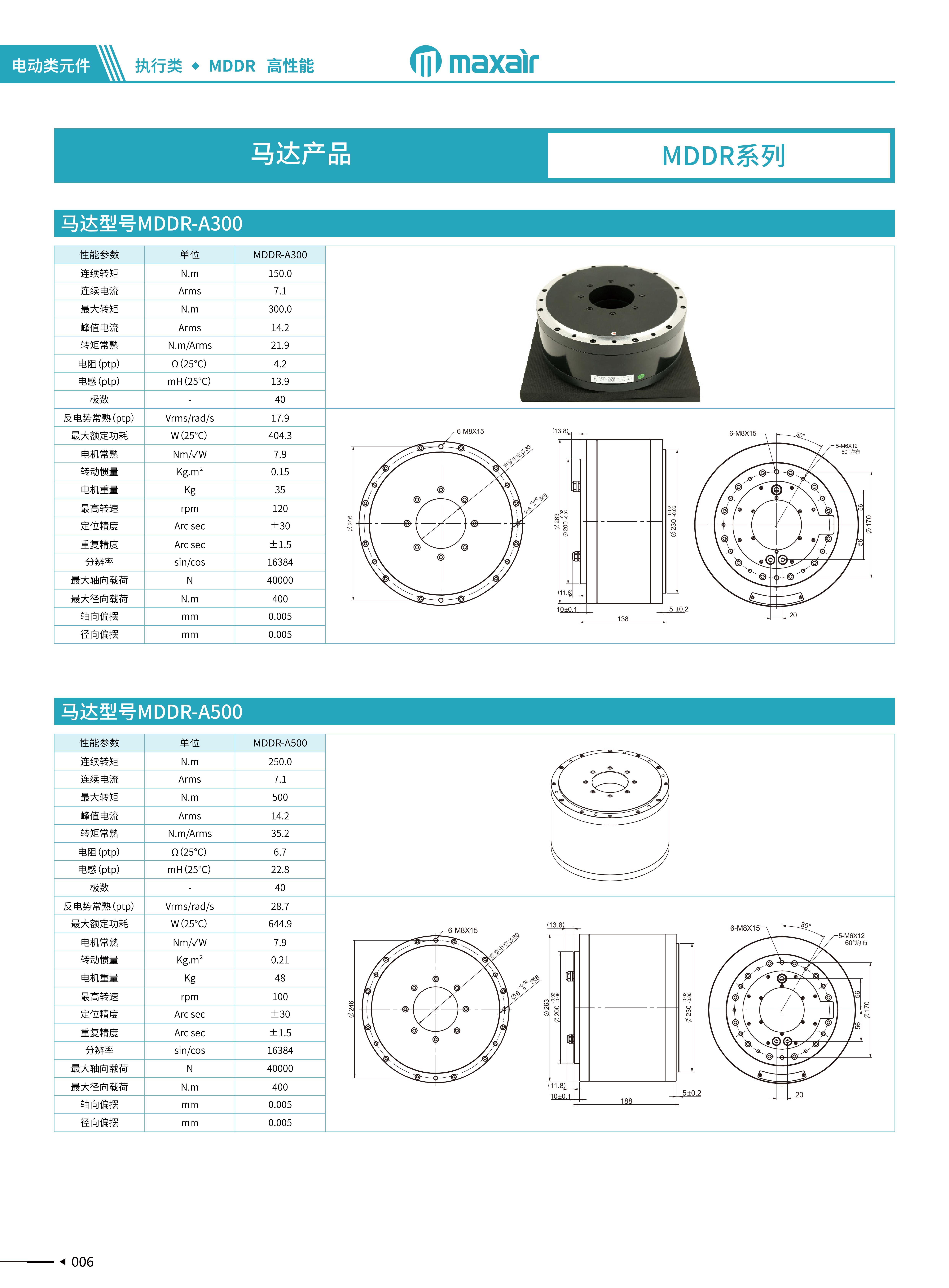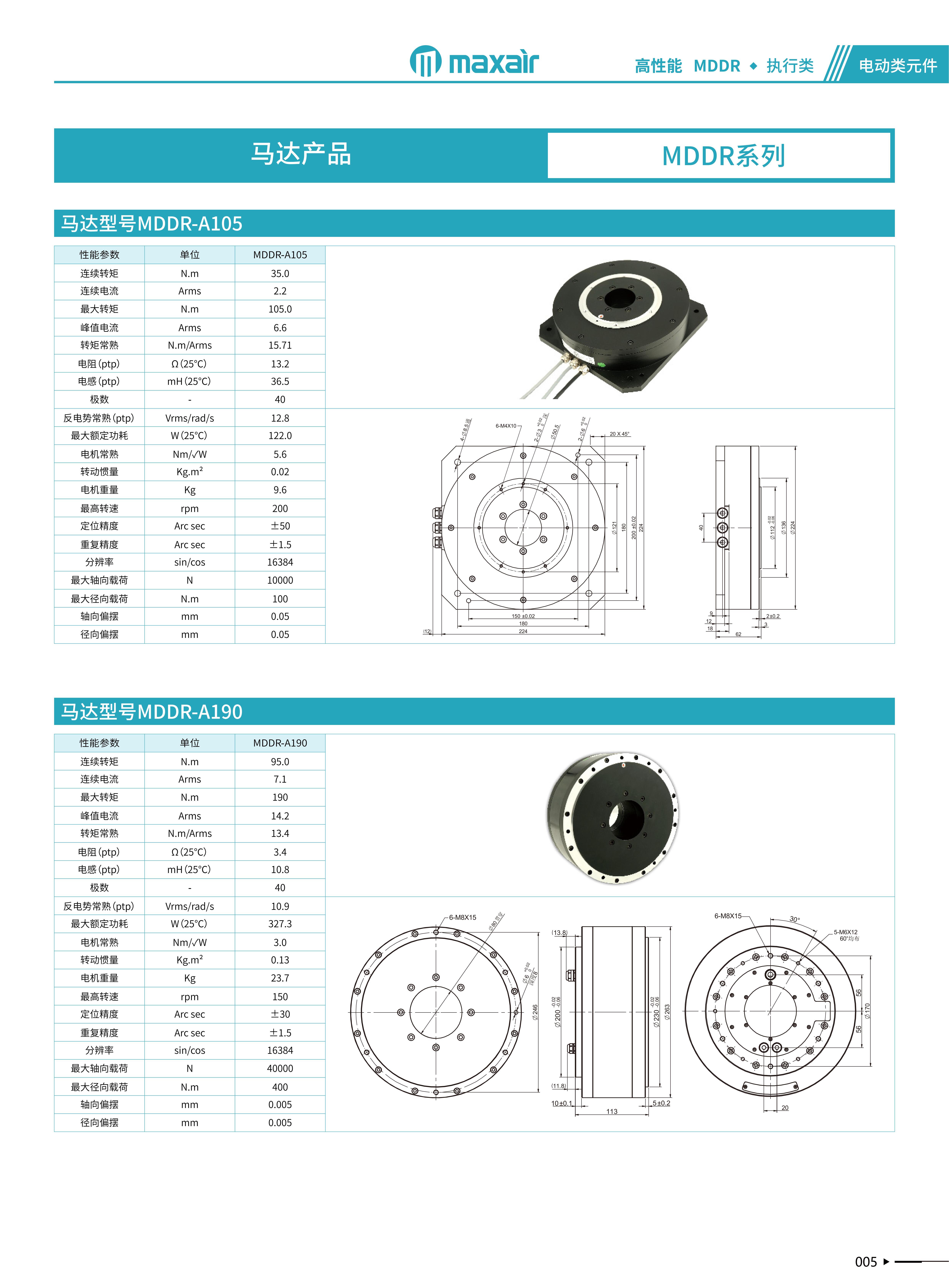 MAXAIR MDDR马达技术源于半导体应用,并针对中国多种工业应用领域而改良形成标准化产品。分内外转子系列产品连续转矩从0.6N.m~50N.m,并接受特殊转矩定制,绝对精度做到±10arc-sec,重复精度做到±larc-sec,um级别轴向跳动,且具有高刚性运动。 常用于:光学对位、定位检测、CNC、LCM光 电行业、锂电 制造设备、FPC/PCB、医疗器械等应用领域。