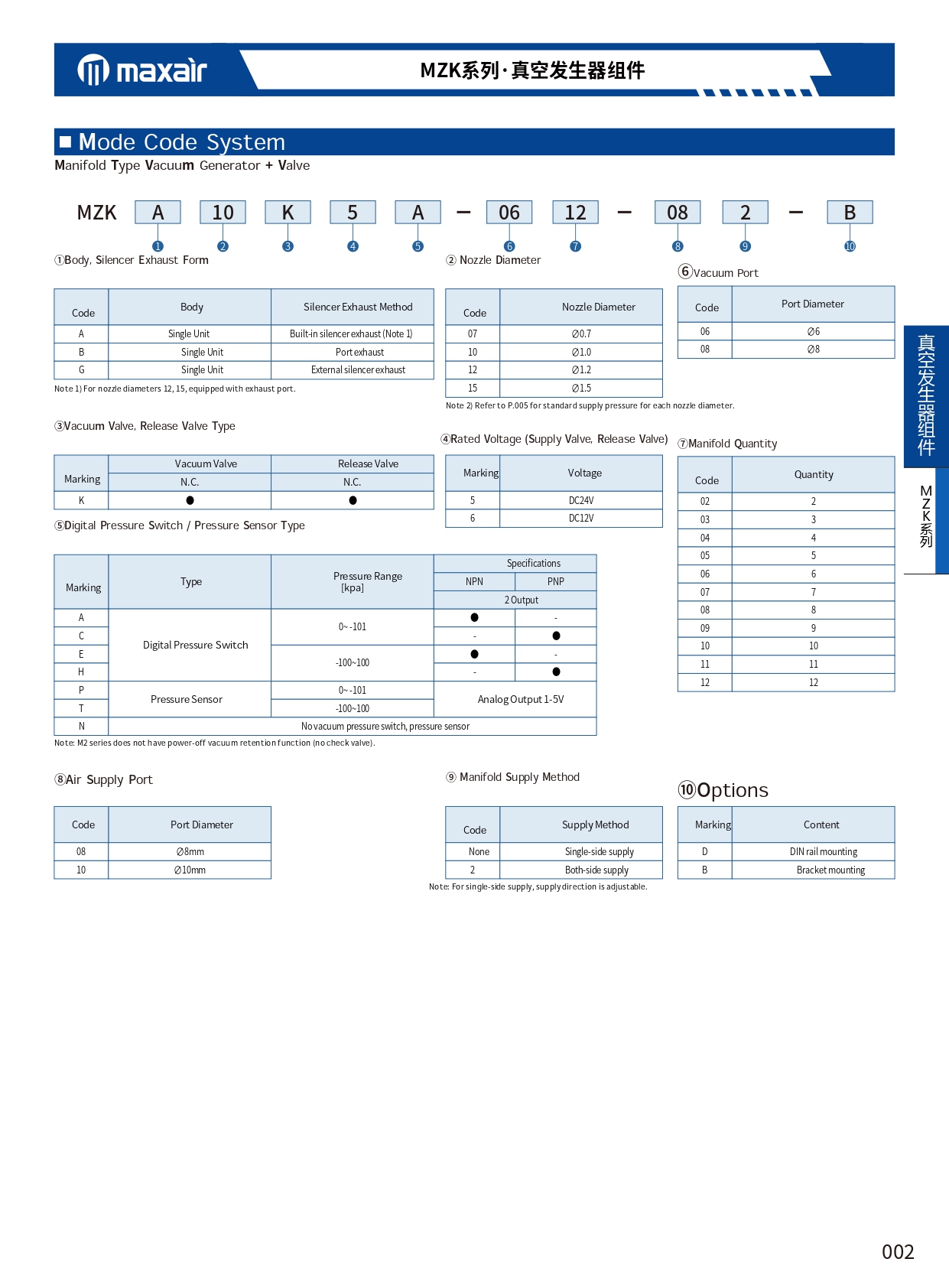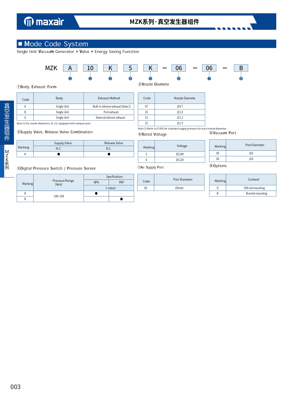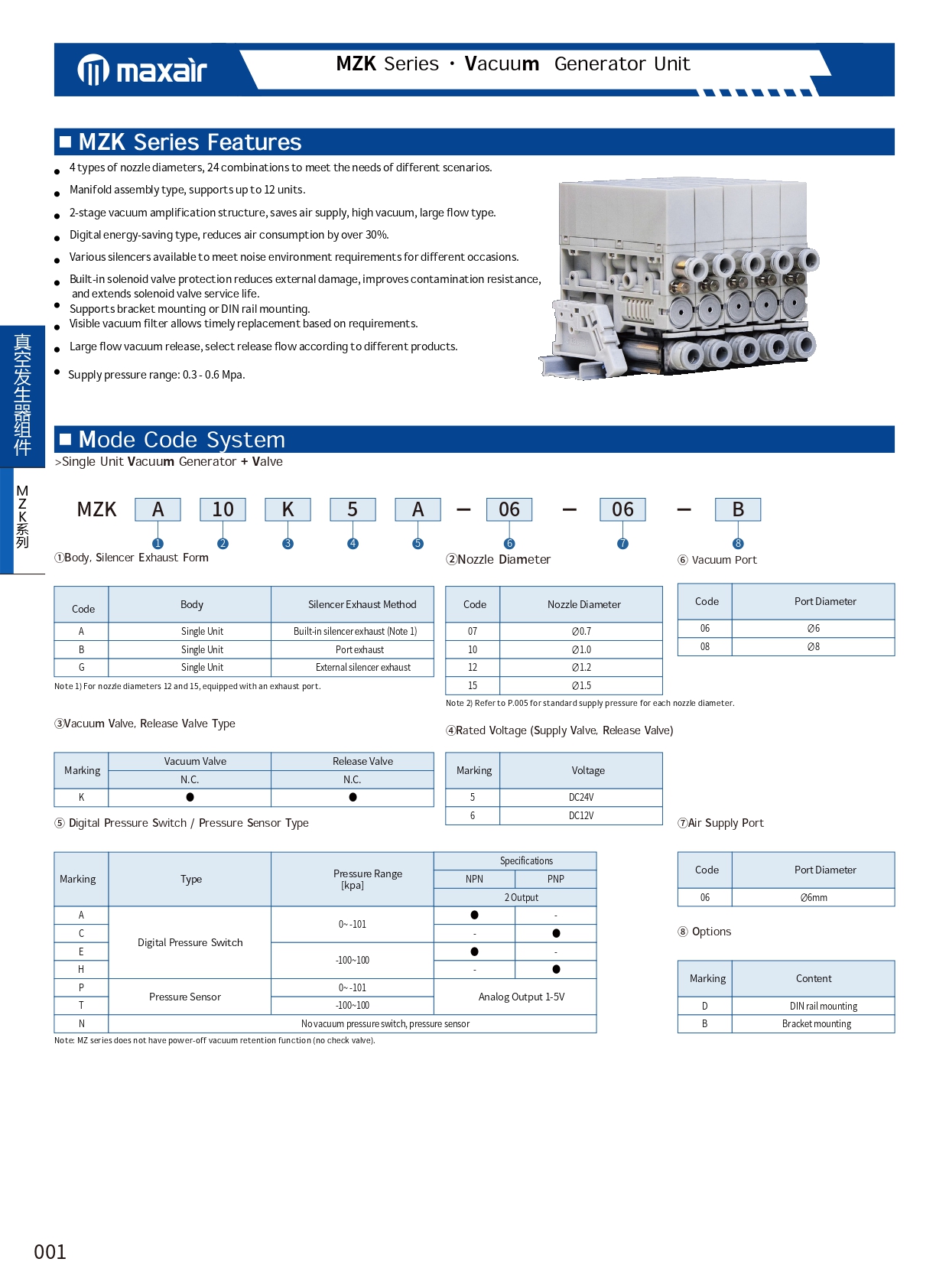 Supply pressure range: 0.3 - 0.6 Mpa.