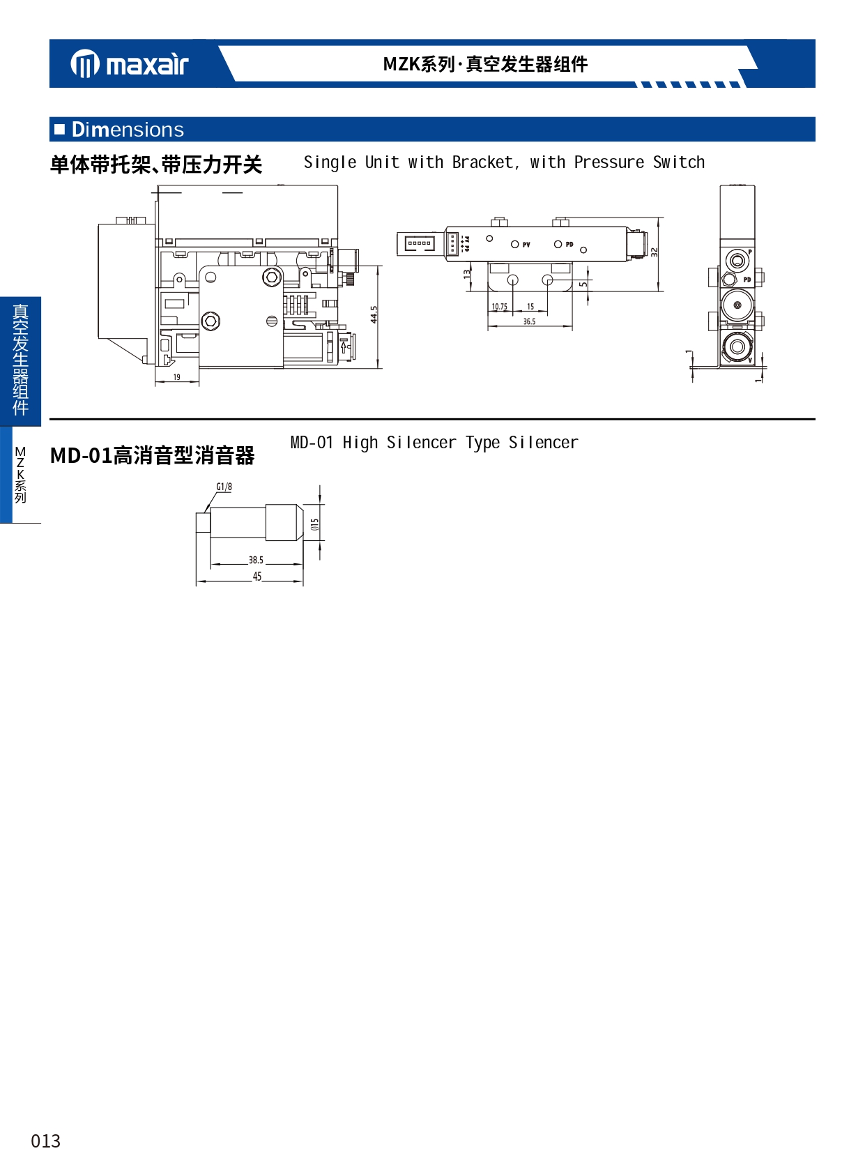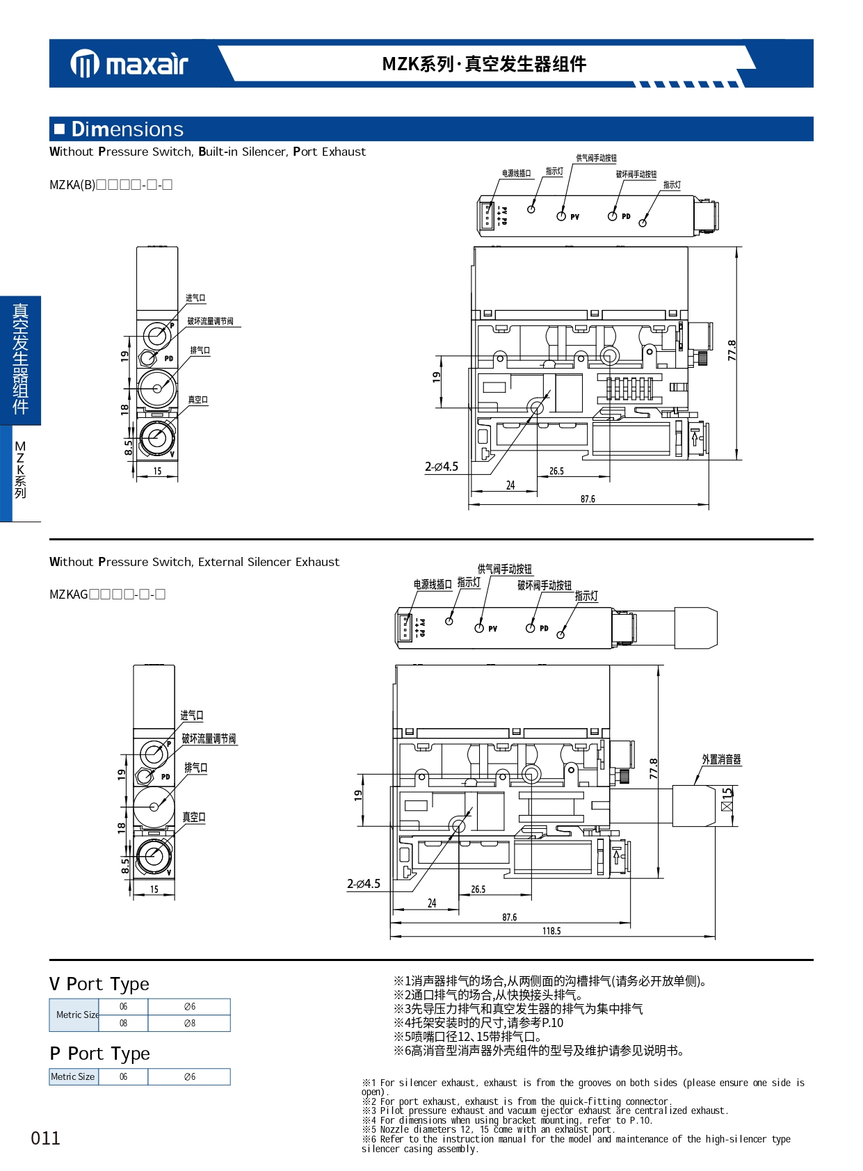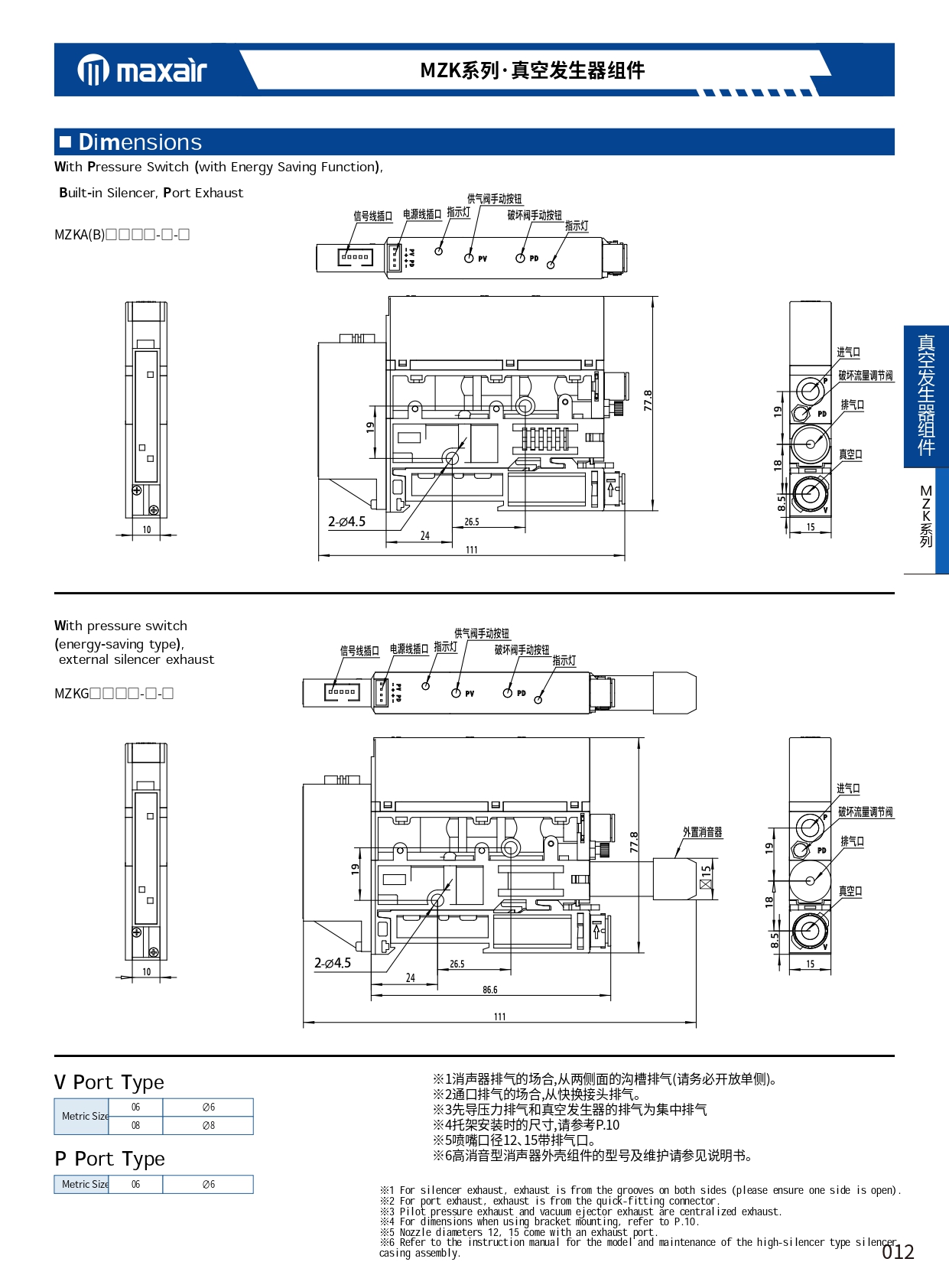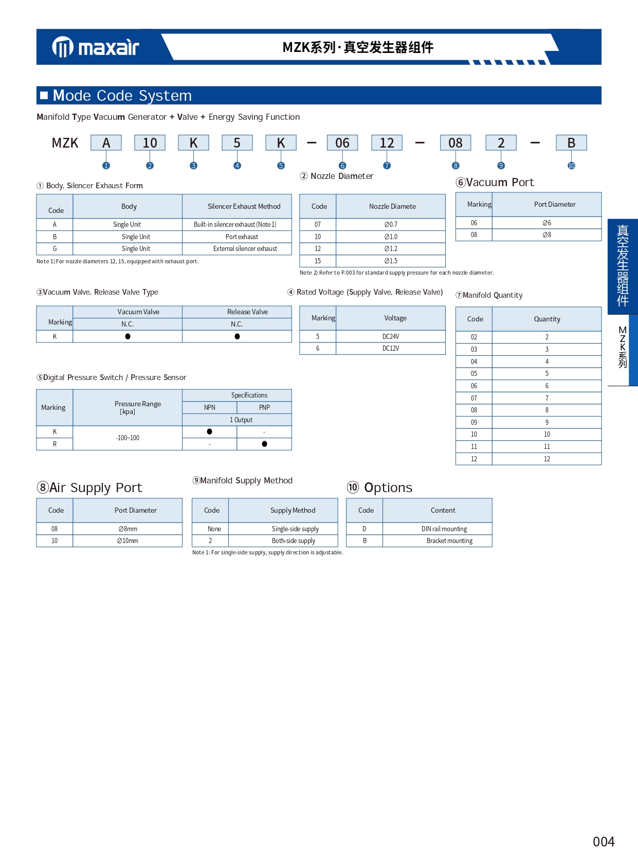 Supply pressure range: 0.3 - 0.6 Mpa.