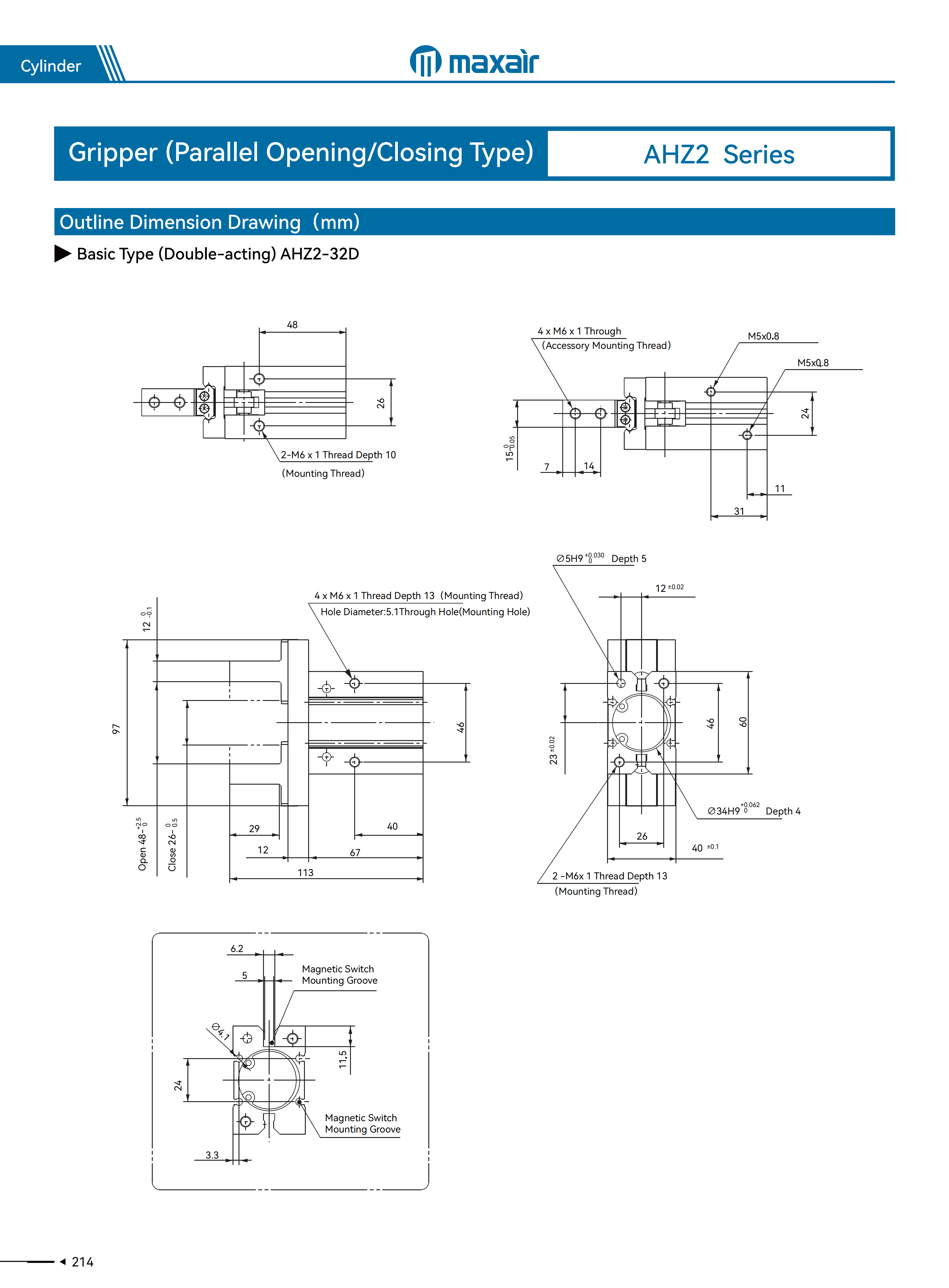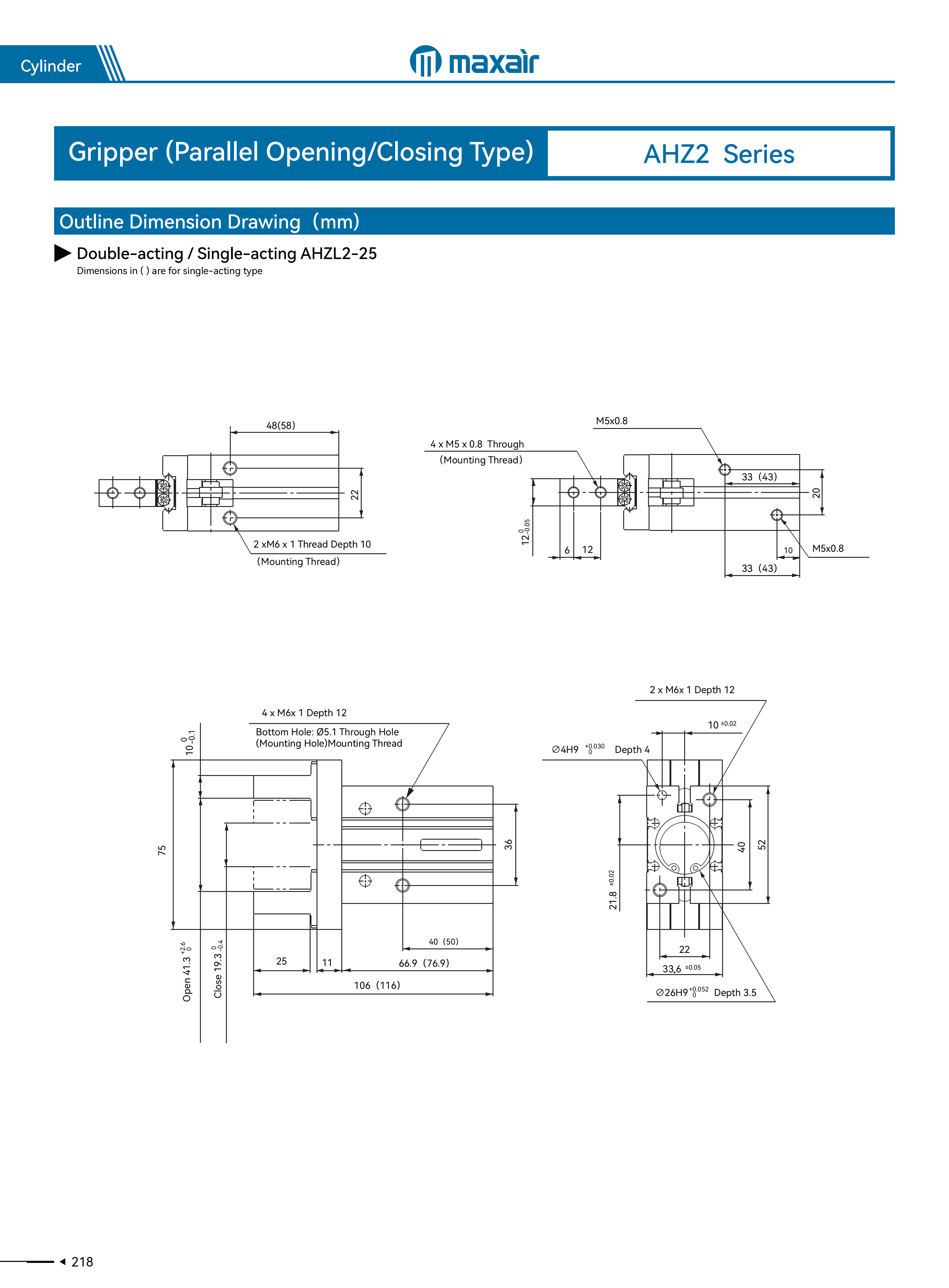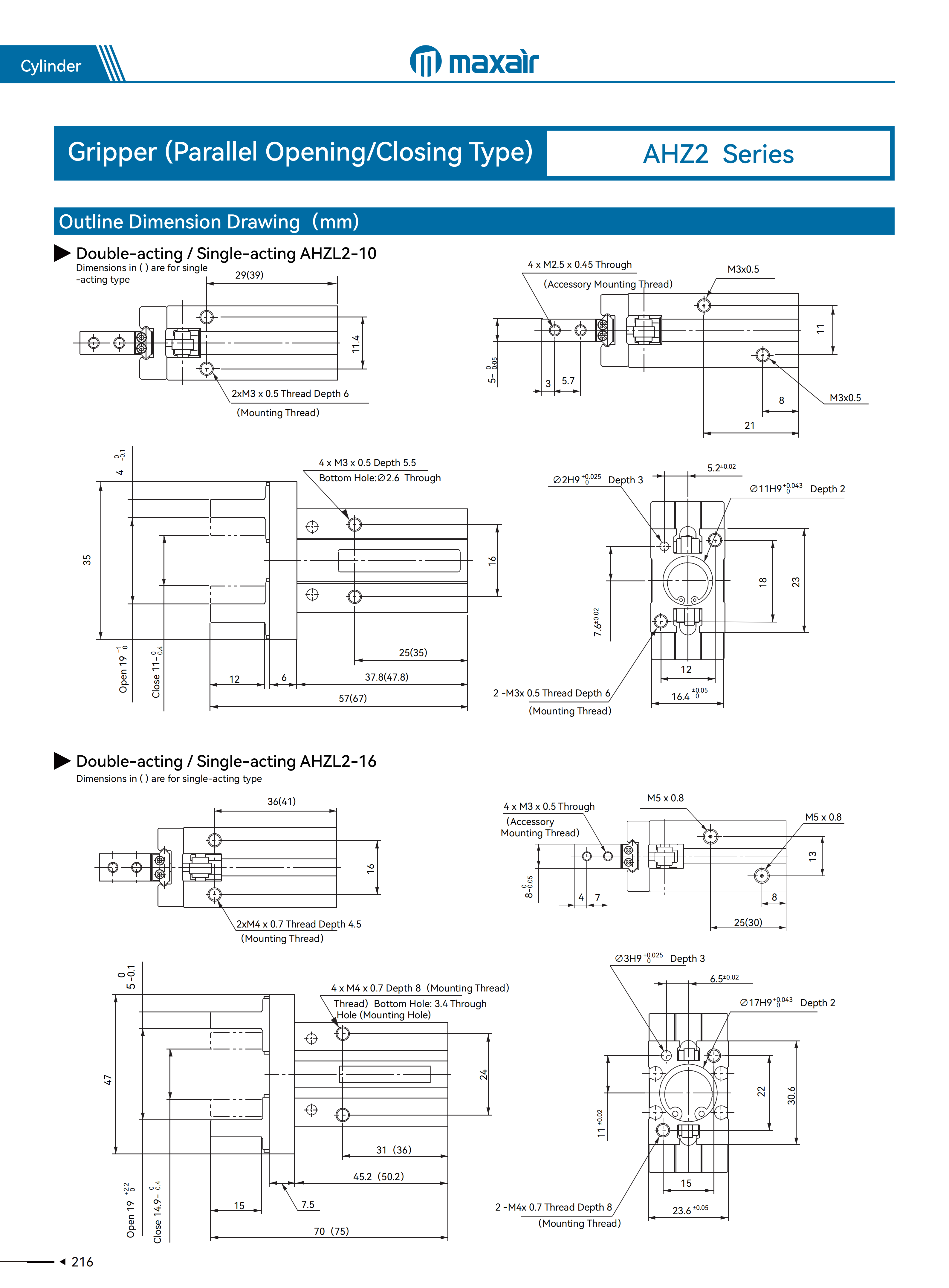 6~25缸径:±0.01mm、32~40缸径:±0.02mm |