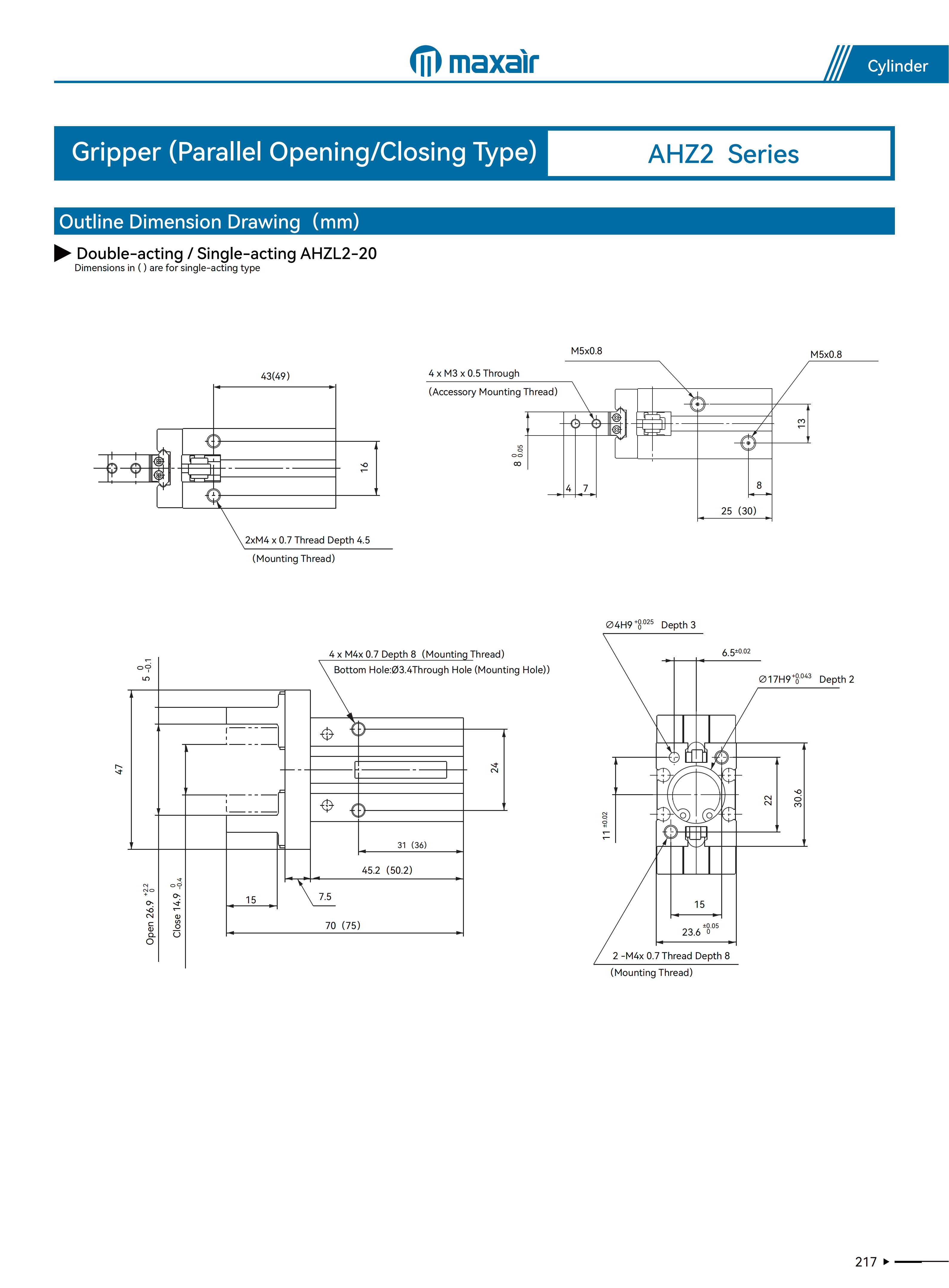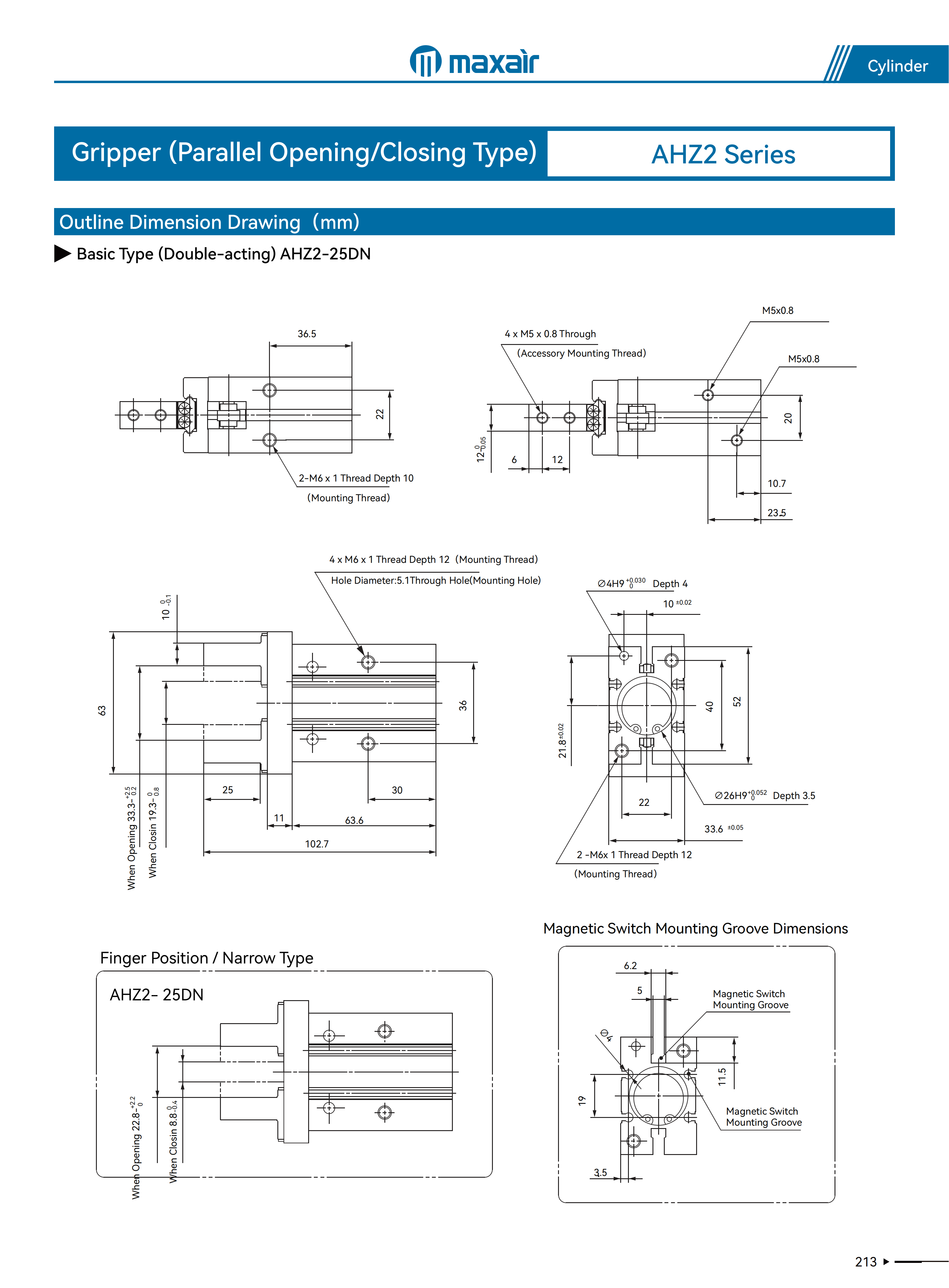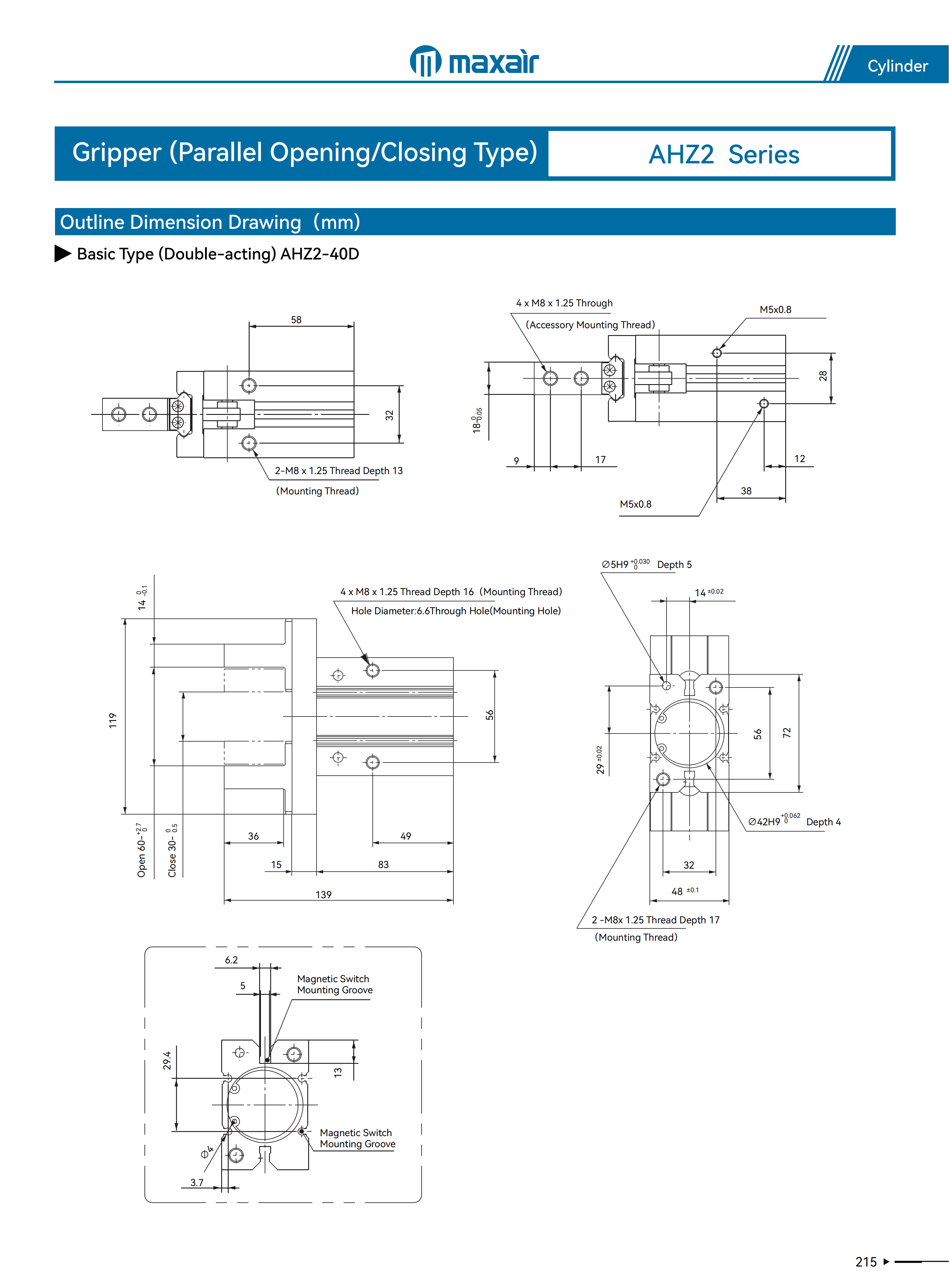 6~25缸径:±0.01mm、32~40缸径:±0.02mm |